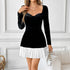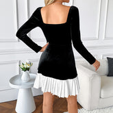 French Elegant Classic Black And White Contrast Color Peach Collar Velvet Dress