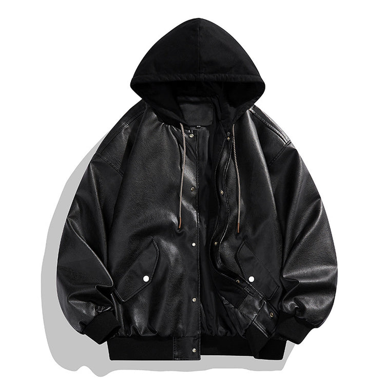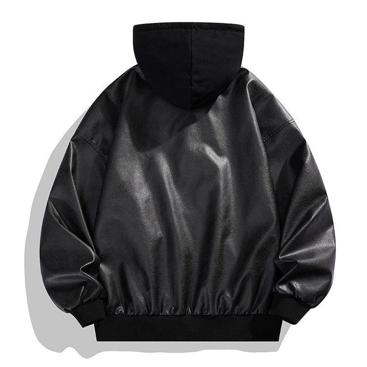 Fake Two-piece High Street Cool Retro Leather Jacket For Men