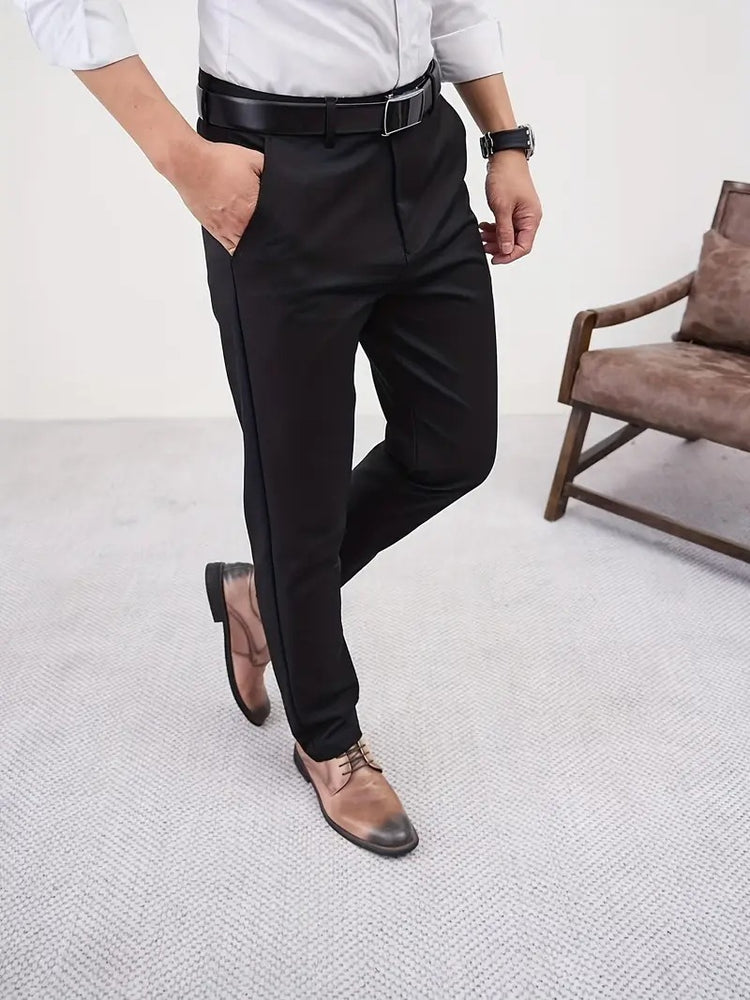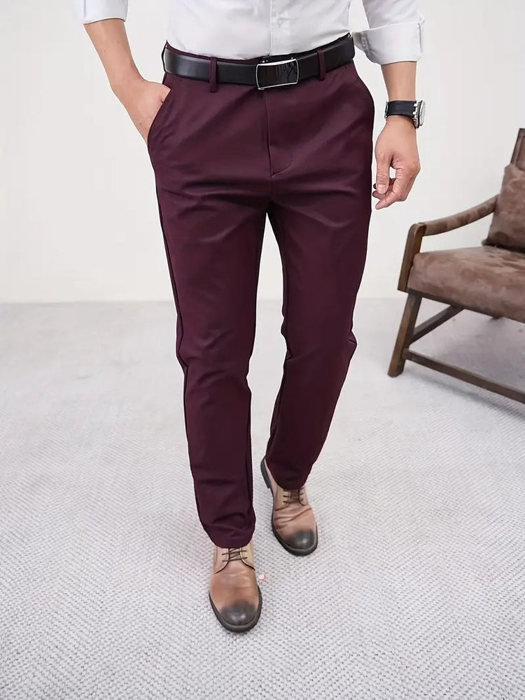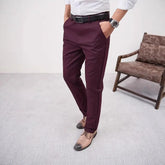 Men's Slim Fit Business Pure Color Casual Tappered Straight-leg Trousers