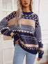 Pullover Round Neck Long Sleeves Contrast Color Diamond Patterns Sweater