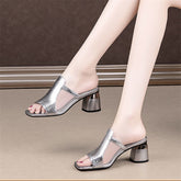 Women's Outer Mesh Thick Heel Semi Slippers Open Toe Slippers High Heels