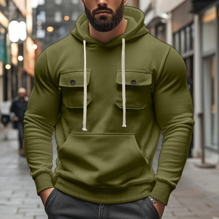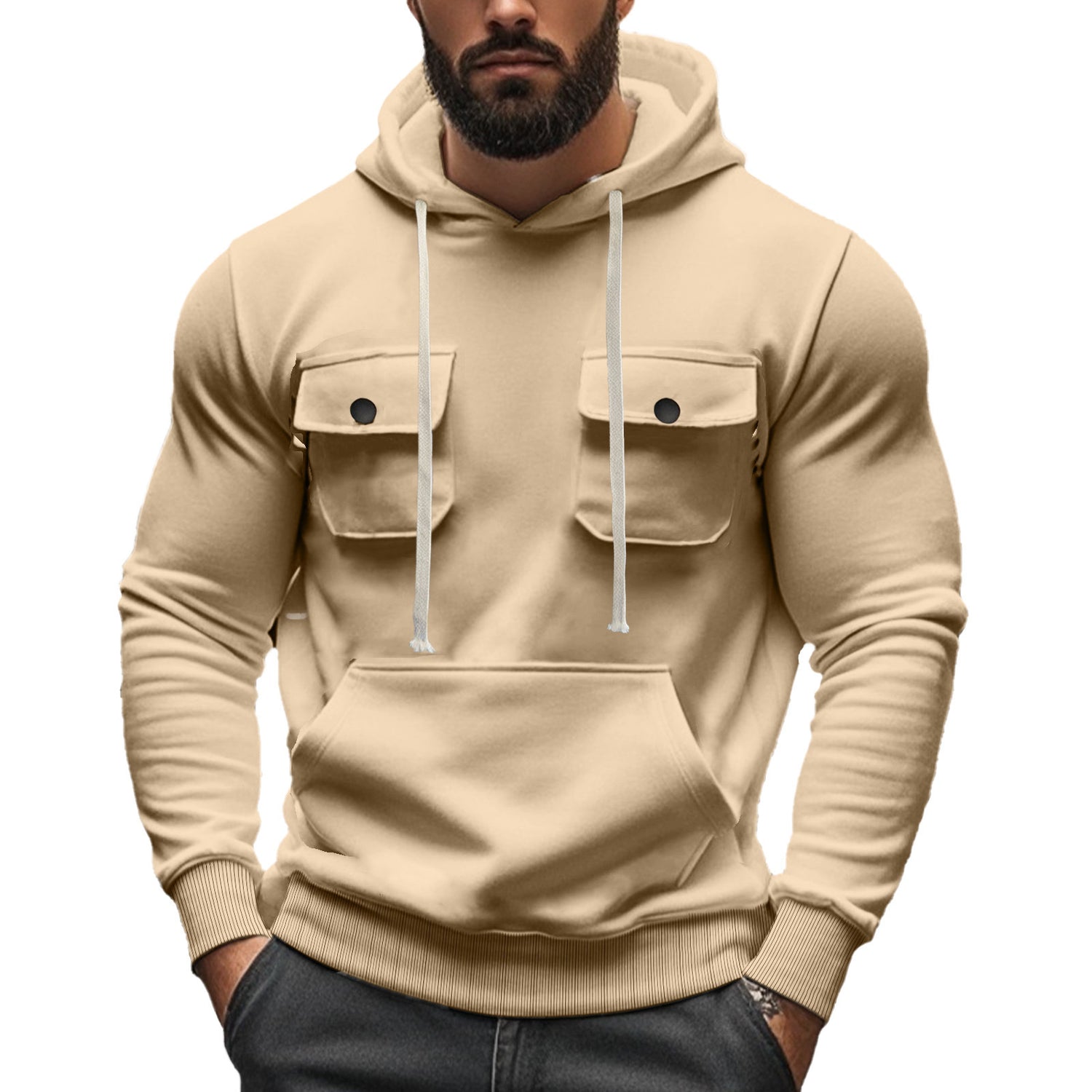 Workwear Multi-pocket Long Sleeve Solid Color Coat For Men